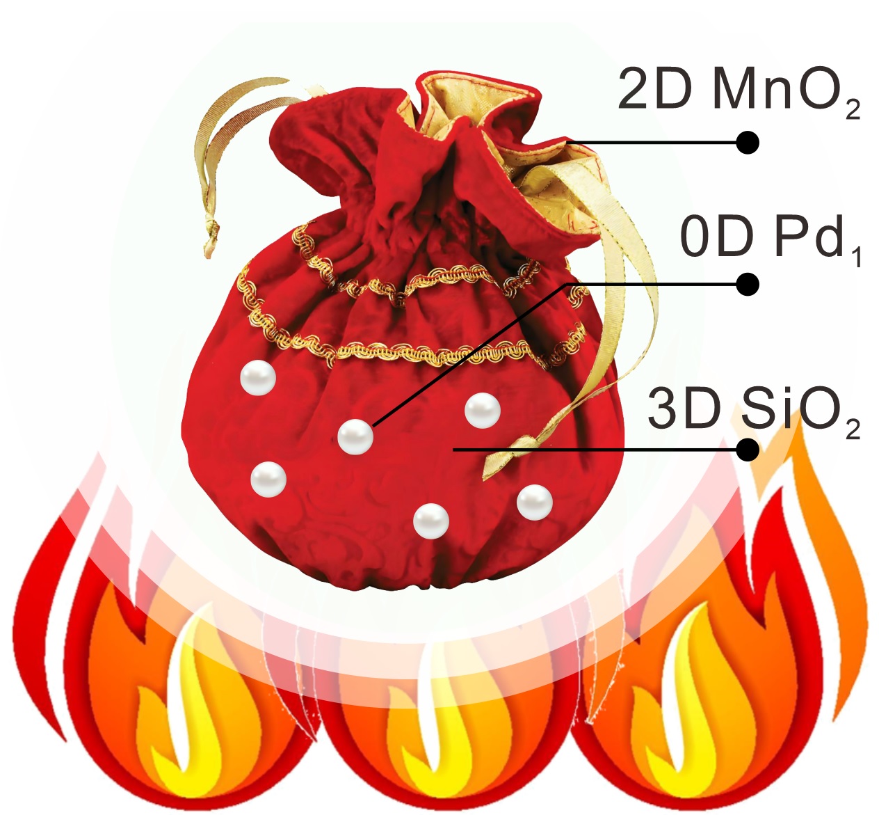 二维材料的高比表面积和量子效应诱导的特殊表面电子态,在催化化学领域受到广泛关注。由于二维材料普遍存在热稳定性较差等问题,多数基于二维材料的催化研究集中于电催化、光催化等室温条件下的催化反应体系。针对此,刘朋昕课题组博士后陈少华等利用静电组装策略,将单原子层氧化锰纳米片包裹在二氧化硅球表面,将氧化锰的受热相变温度提高了两百度。基于此,单原子层氧化锰纳米片的本征热催化性能首次得到精准测定。此外,负载在上述材料表面的单原子钯物种也因这一特殊的零维-二维-三维(0D/2D/3D)结构,展现出更强的热稳定性。