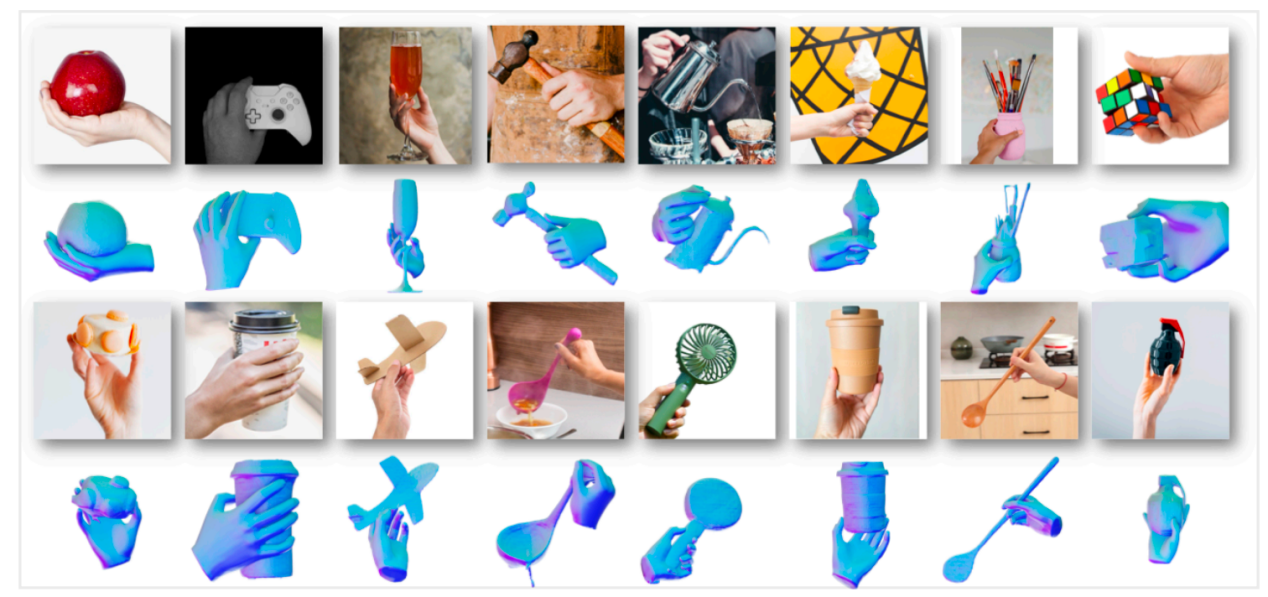 从单视角图像中重建手-物交互是一项基础且具挑战性的任务。当前用于分割、修复和3D重建的基础模型在处理真实场景图像时表现出了强大的泛化能力,这为手-物交互的重建提供了可靠的视觉和几何先验。基于这一观察团队提出了一套创新的手-物交互重建方案。多个公开数据集上的实验评估表明,与现有相比该方法在重建的精度和鲁棒性上均具有显著优势,能够从多样化的真实手-物交互图片中准确还原物体的几何形状及交互细节。