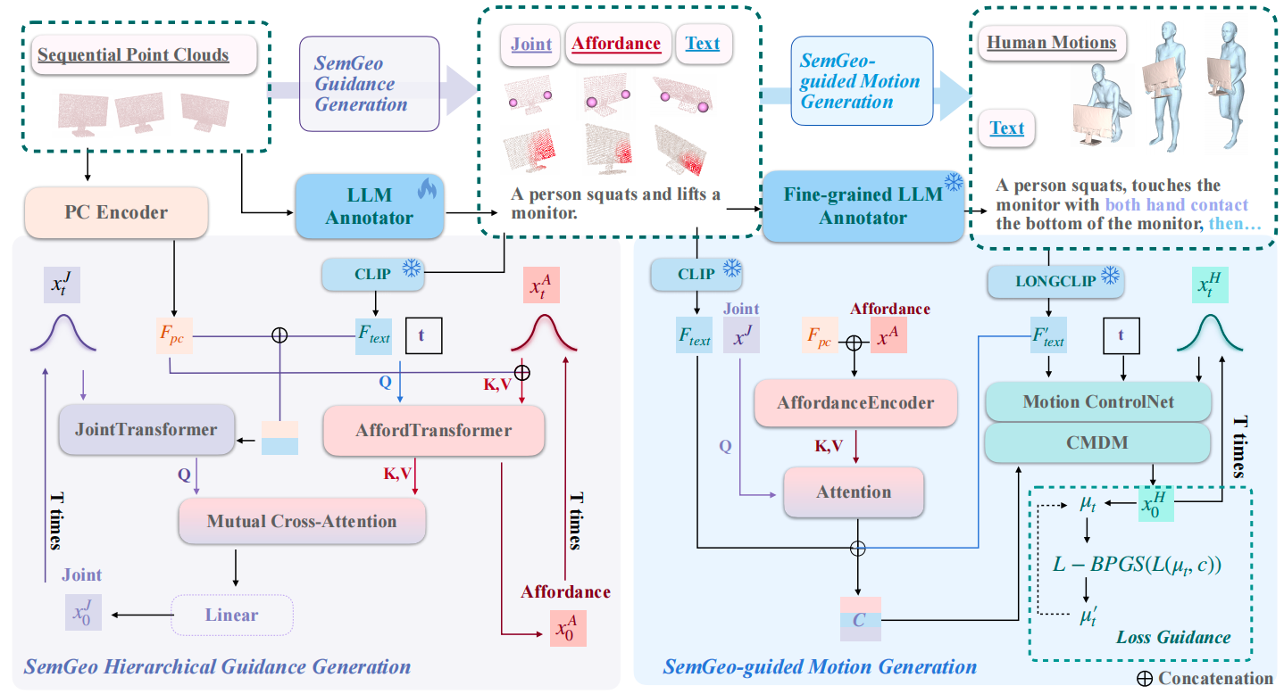 SemGeoMo:具有语义和几何引导的动态情境人体运动生成