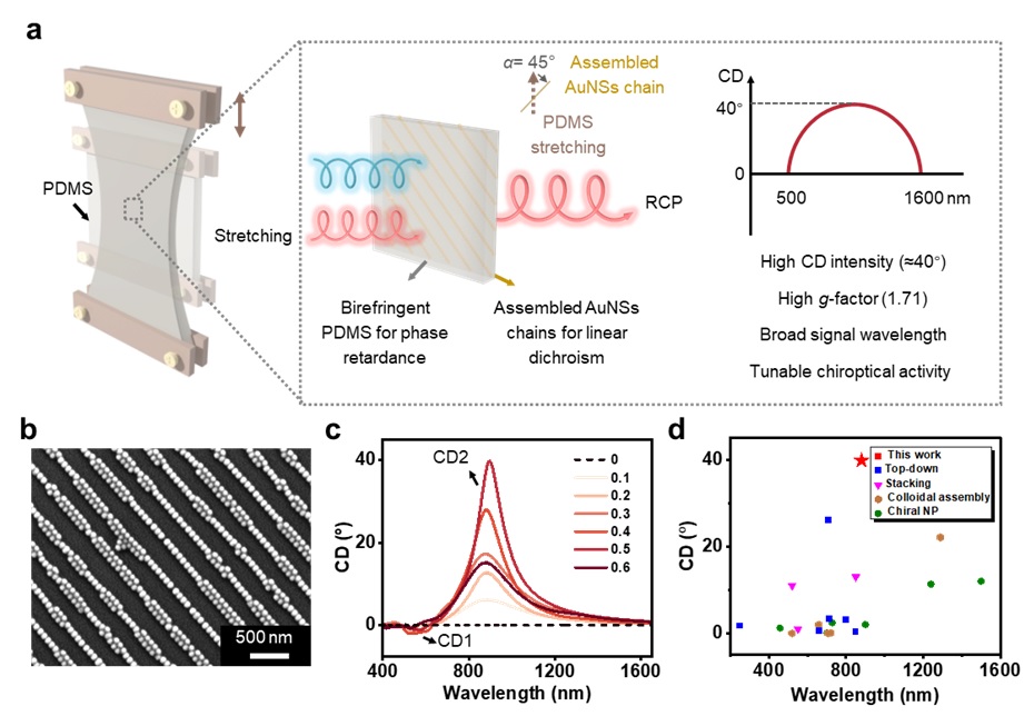 论文标题:Dynamic mechanical modulation of chiroptical structures via linearly assembled plasmonic nanoparticles on birefringent polymer films