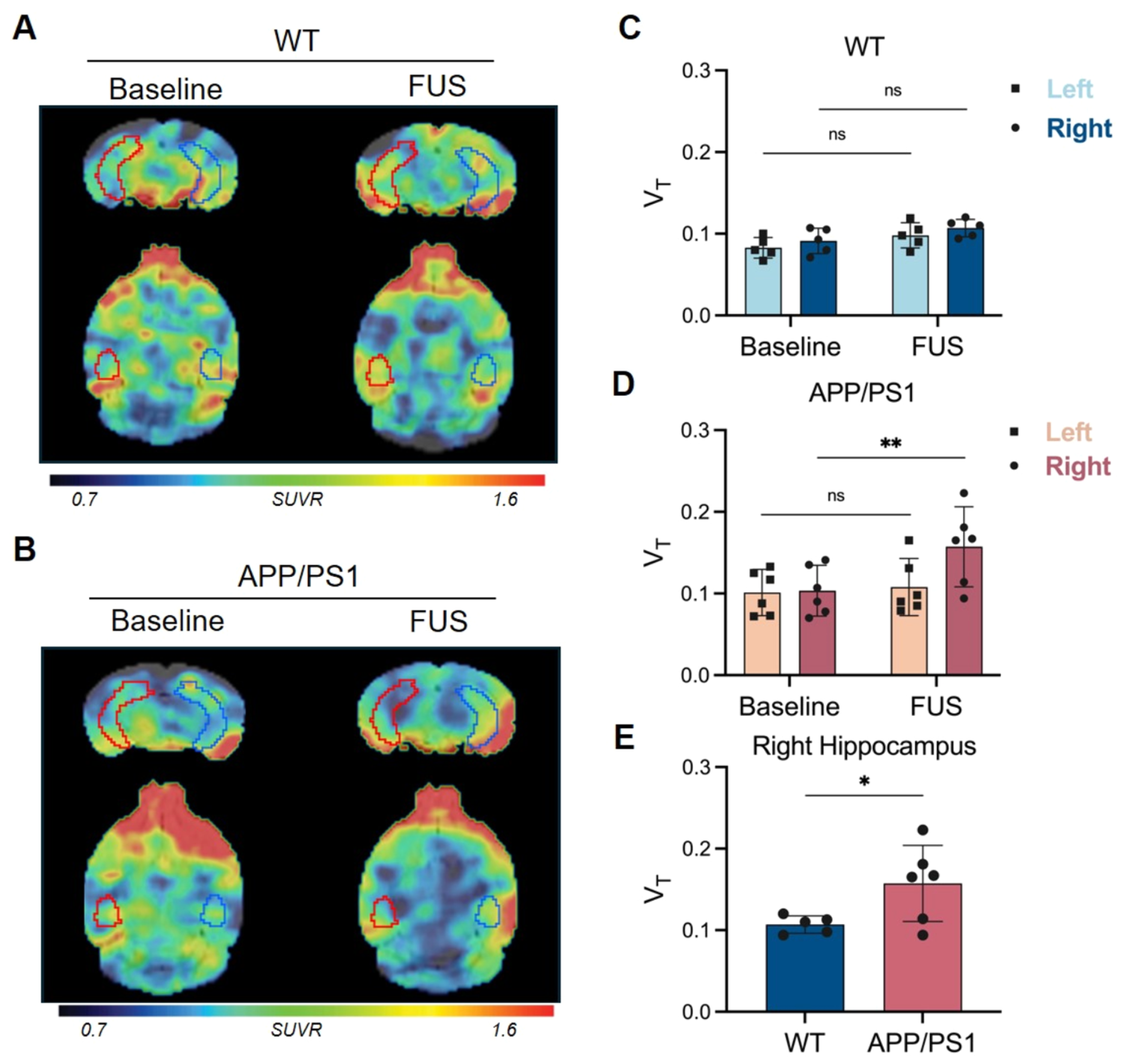 图2:FUS介导的镓-68显像剂递送在AD小鼠模型中的PET成像
