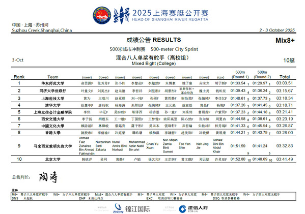 2025年上海赛艇公开赛上科大赛艇队参赛信息: